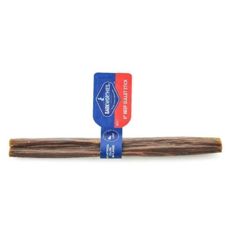 Barkworthies All-Natural Beef Gullet Sticks are high-protein dog chews made from high quality Argentinian beef. These all-natural dog chews measure approximately 6 inches in length and are great for aggressive chewers. As beneficial as they are delicious, these Beef Gullet chews clean your dog’s teeth as he gnaws! In addition to preventing buildup of tartar and plaque, these healthy dog treats also feature a natural source of glucosamine — an amino acid shown to aid in joint health.