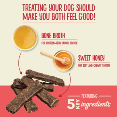 ACANA™ Chewy Tenders will satisfy your dog with delicious, nutritious and lasting enjoyment. Crafted with ingredients you can feel good about, our Chewy Beef Recipe is rich with protein from savory beef and bone broth, and fiber-rich sweet potatoes for digestive support. Sweet honey adds a soft, chewy texture that keeps your dog satisfied, making Chewy Tenders a perfect snack for moments when you want to treat your dog to delicious flavor and happiness