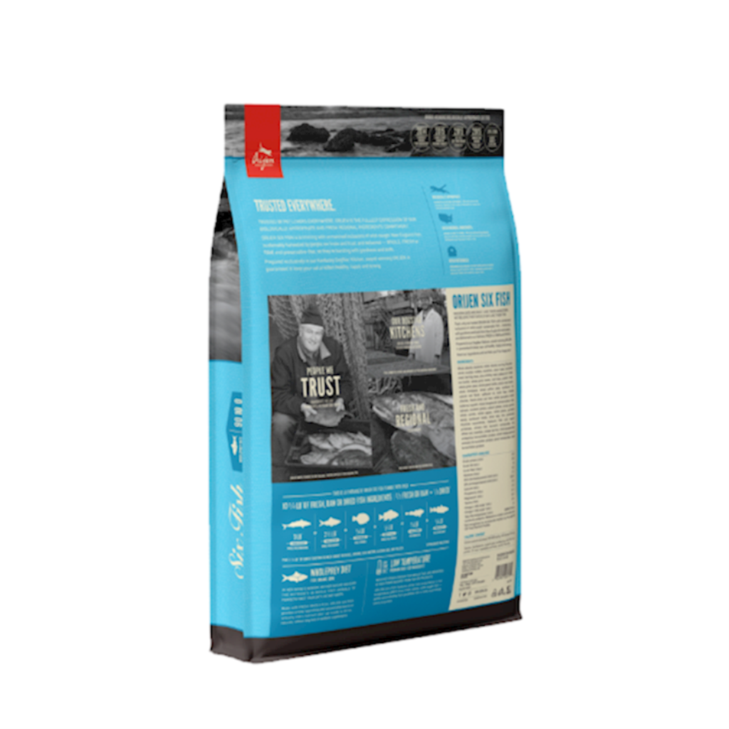 Help your pet thrive with the power of protein-rich recipes that nourish as nature intended. As obligate carnivores, modern cats are built like their ancestors and thrive on a Biologically Appropriate diet rich in protein and fat sourced from a variety of animal ingredients. ORIJEN® Six Fish is made with fish, organs, and edible bone from raw** whole mackerel, whole herring, flounder, Acadian redfish, monkfish, and silver hake. With rich inclusions of Wholeprey animals, ORIJEN is made with the most nutrient-dense, succulent parts of the prey to deliver the nutrition cats need. With 90%* quality animal ingredients and coated with freeze-dried liver, this diet is beyond comparison. *approximate and derived from the unprocessed state of the ingredients. +we also add vitamins, minerals, natural preservatives and probiotics. **Our raw ingredients are the same as our fresh, but are frozen at the peak of freshness to preserve nutrients.