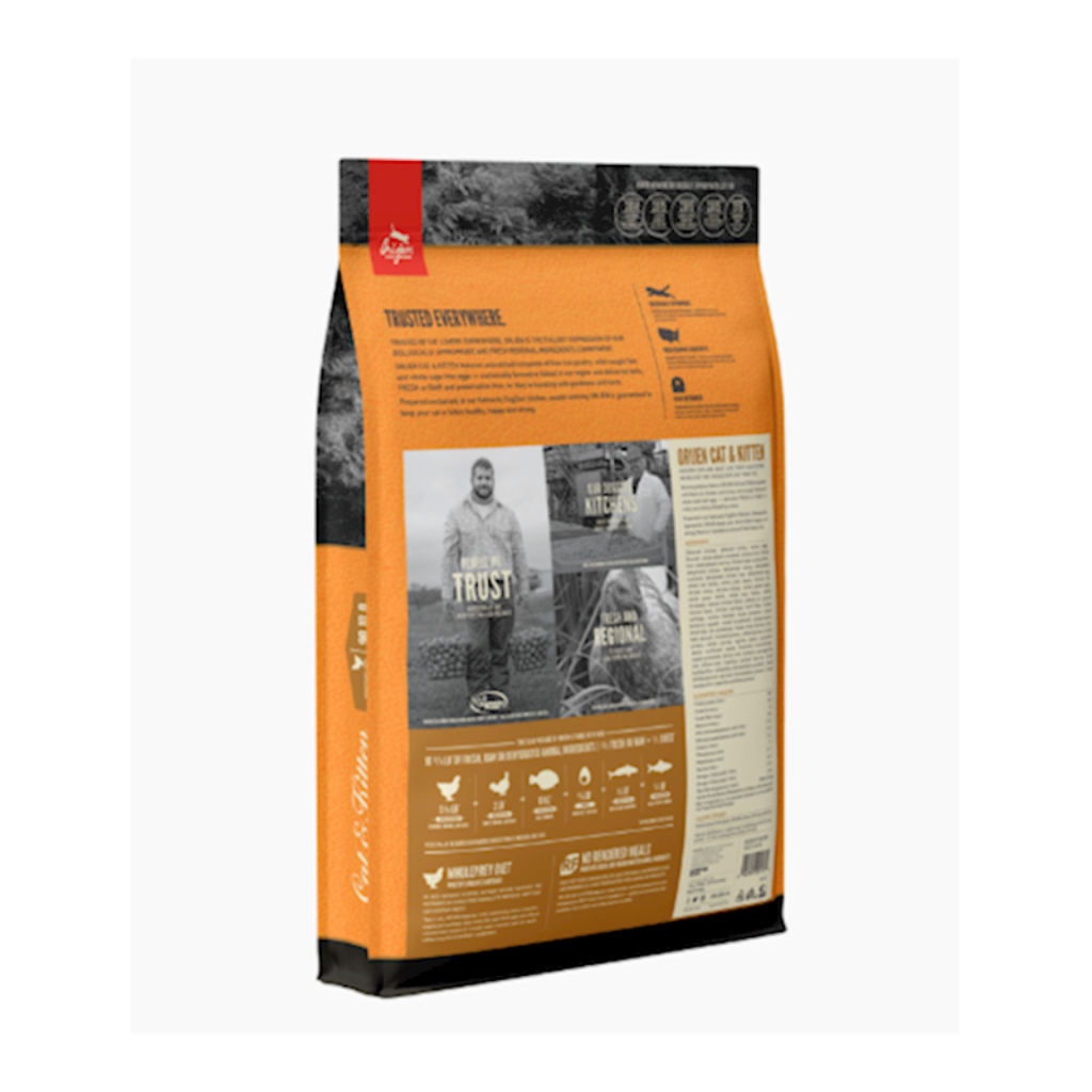 Help your pet thrive with the power of protein-rich recipes that nourish as nature intended. As obligate carnivores, modern cats are built like their ancestors and thrive on a Biologically Appropriate diet rich in protein and fat sourced from a variety of animal ingredients. ORIJEN® Cat & Kitten is made with poultry and fish, organs, cartilage, and edible bone from fresh or raw ** free-run chicken and turkey, cage-free eggs, and wild-caught fish. With rich inclusions of Wholeprey animals, ORIJEN is made with the most nutrient-dense, succulent parts of the prey to deliver the nutrition cats need. With 90%* quality animal ingredients and coated with freeze-dried liver, this diet is beyond comparison.