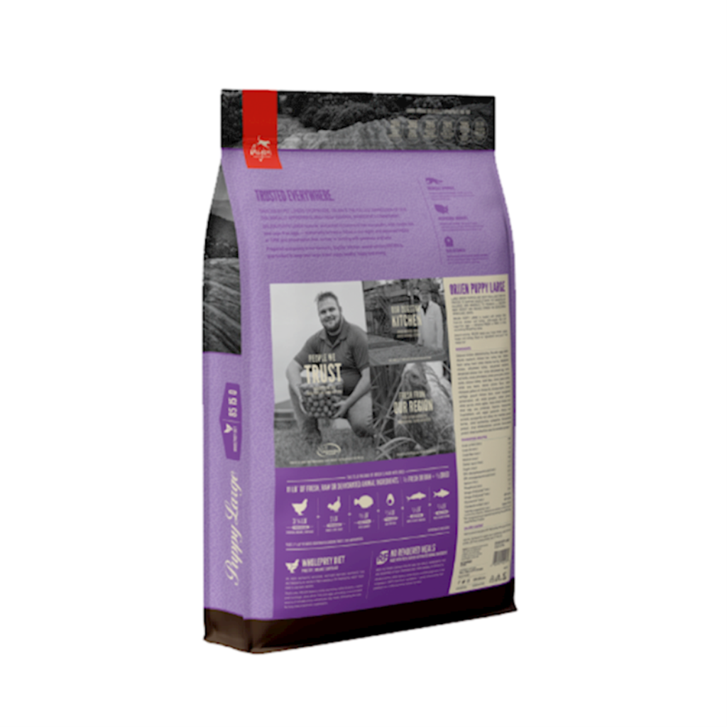 Help your pet thrive with the power of protein-rich recipes that nourish as nature intended. All large breed puppies do best on a Biologically Appropriate diet: one that is rich in protein and fat from quality animal ingredients to support peak development. ORIJEN® Puppy Large is packed with 85%* quality animal ingredients like fresh or raw** free-run chicken and turkey, wild-caught fish, and cage-free eggs. With rich inclusions of Wholeprey animals, ORIJEN is made with the most nutrient-dense, succulent parts of the prey to deliver the nutrition dogs need. The result is a diet for your canine companion that is beyond comparison. *approximate and derived from the unprocessed state of the ingredients. **Our fresh ingredients use refrigeration as the sole method of preservation. Our raw ingredients are the same as our fresh, but are frozen at the peak of freshness to preserve nutrients.