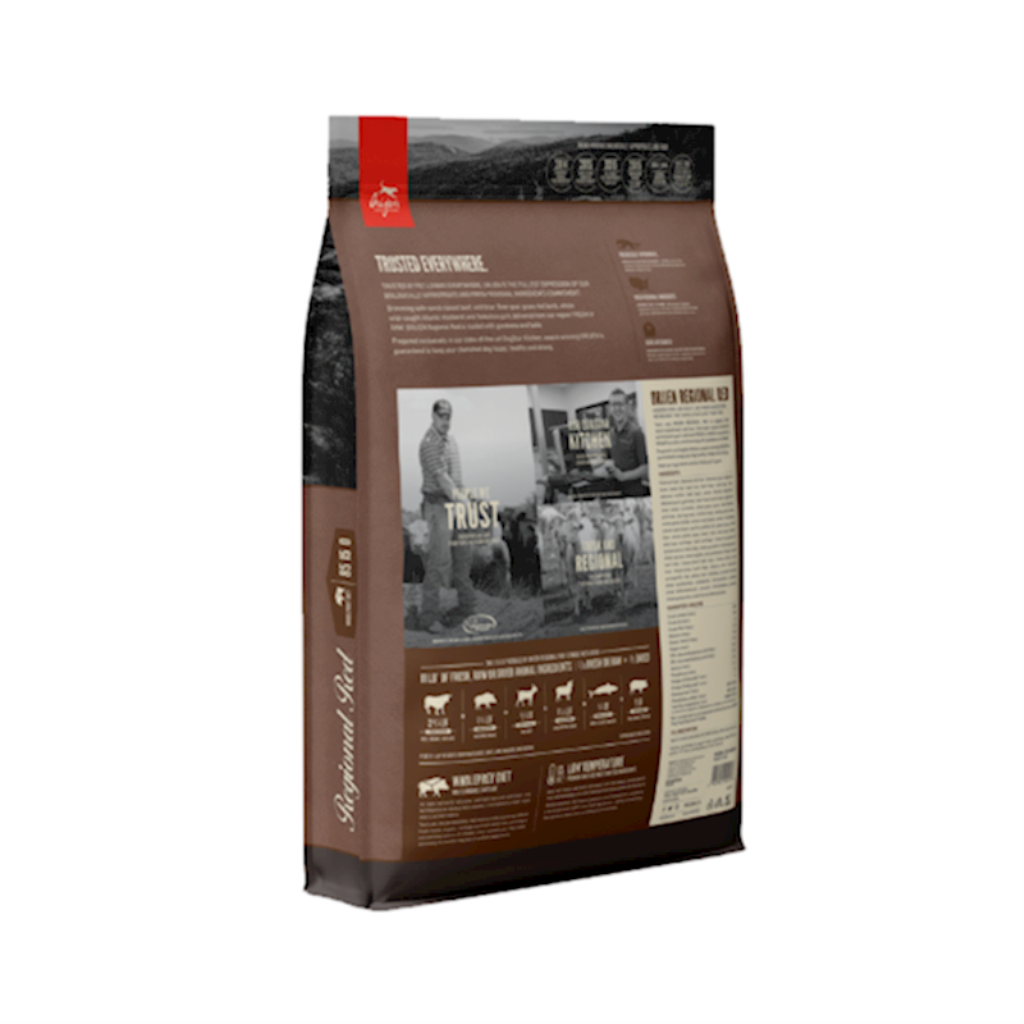 Help your dog thrive with the power of protein-rich recipes that provide peak nourishment. Dogs are ancestral carnivores, so they need a Biologically Appropriate diet rich and varied in whole animal ingredients. ORIJEN® Regional Red diet is packed with 85%* quality animal ingredients like fresh or raw beef, wild boar, lamb, pork liver and beef liver. Packed with WholePrey animal ingredients like organs and bone, ORIJEN food is made with the most nutrient-dense, succulent parts of the prey to deliver the nutrition dogs need. The result is a diet for your canine companion that is beyond comparison. *Approximate and derived from the unprocessed state of the ingredients.