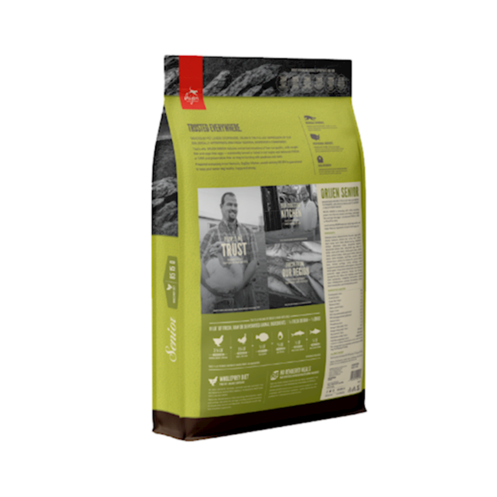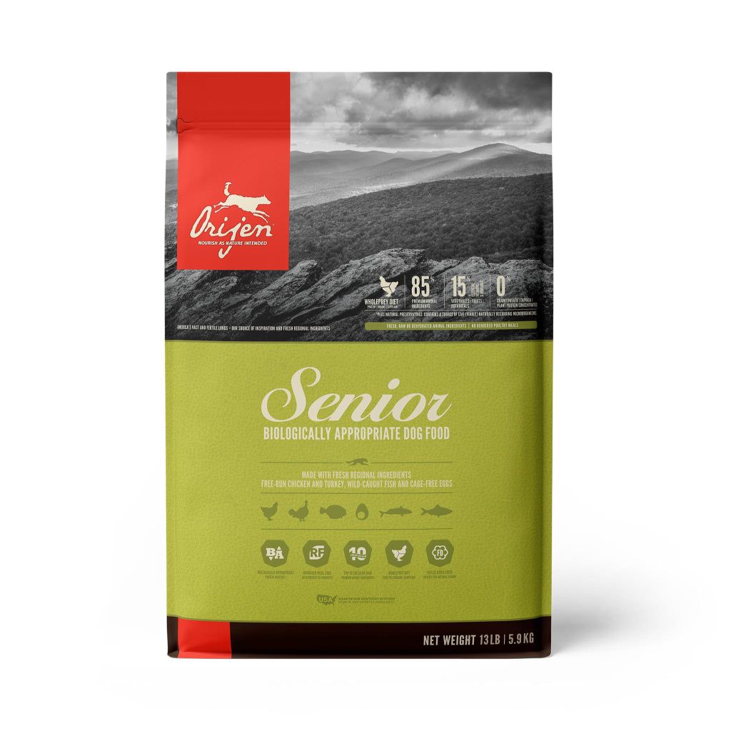 Help your pet thrive with the power of protein-rich recipes that nourish as nature intended Dogs are ancestral carnivores, so their Biologically Appropriate diet is rich and varied in whole animal ingredients. ORIJEN® Senior is crafted specifically for your senior dog to help them stay healthy by supporting lean muscle mass and weight maintenance. With rich inclusions of Wholeprey animals, ORIJEN is made with the most nutrient-dense, succulent parts of the prey to deliver the nutrition dogs need. With 85%* quality animal ingredients and coated with freeze-dried liver, this diet is beyond comparison. *approximate and derived from the unprocessed state of the ingredients. **Our fresh ingredients use refrigeration as the sole method of preservation. Our raw ingredients are the same as our fresh, but are frozen at the peak of freshness to preserve nutrients.
