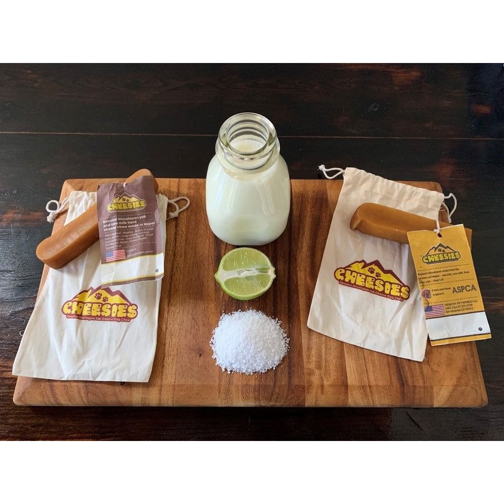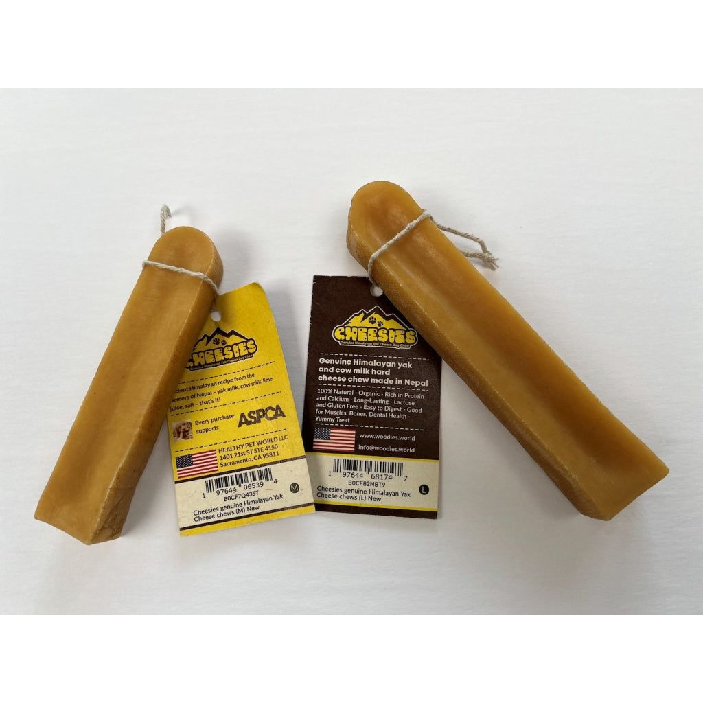 Cheesies - a genuine Himalayan yak cheese dog chew, from Nepal - are highly nutritious yak milk chews, sourced from the cleanest and higher elevations. This means that our Chews are made with a high percentage of Yak Milk making them more dense and longer-lasting.