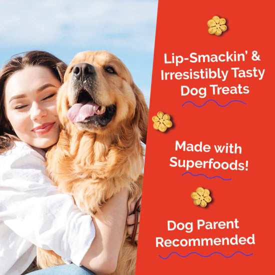 Finally, a healthy dog treat that’s super enough for your super-duper pet! Made with pumpkin for dogs, every bite is bursting with irresistible flavor and an aroma to match. Once dogs get a whiff, they’ll do anything you want. And since they’re formulated with CalorieSmart® nutrition at 8 calories each, you can feel good about asking!