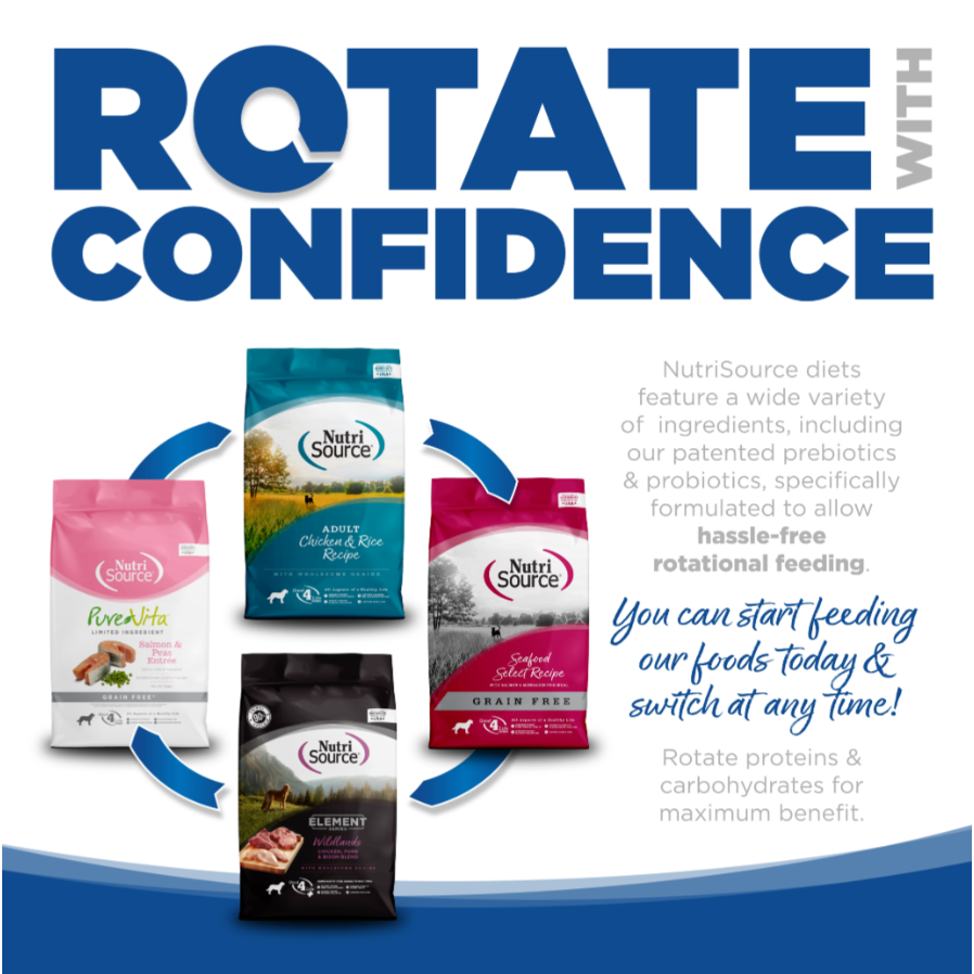 - As a member of our grain inclusive series of dog foods, NutriSource® Choice Recipes are formulated to meet AAFCO guidelines for maintenance of adult dogs at an entry level price point.