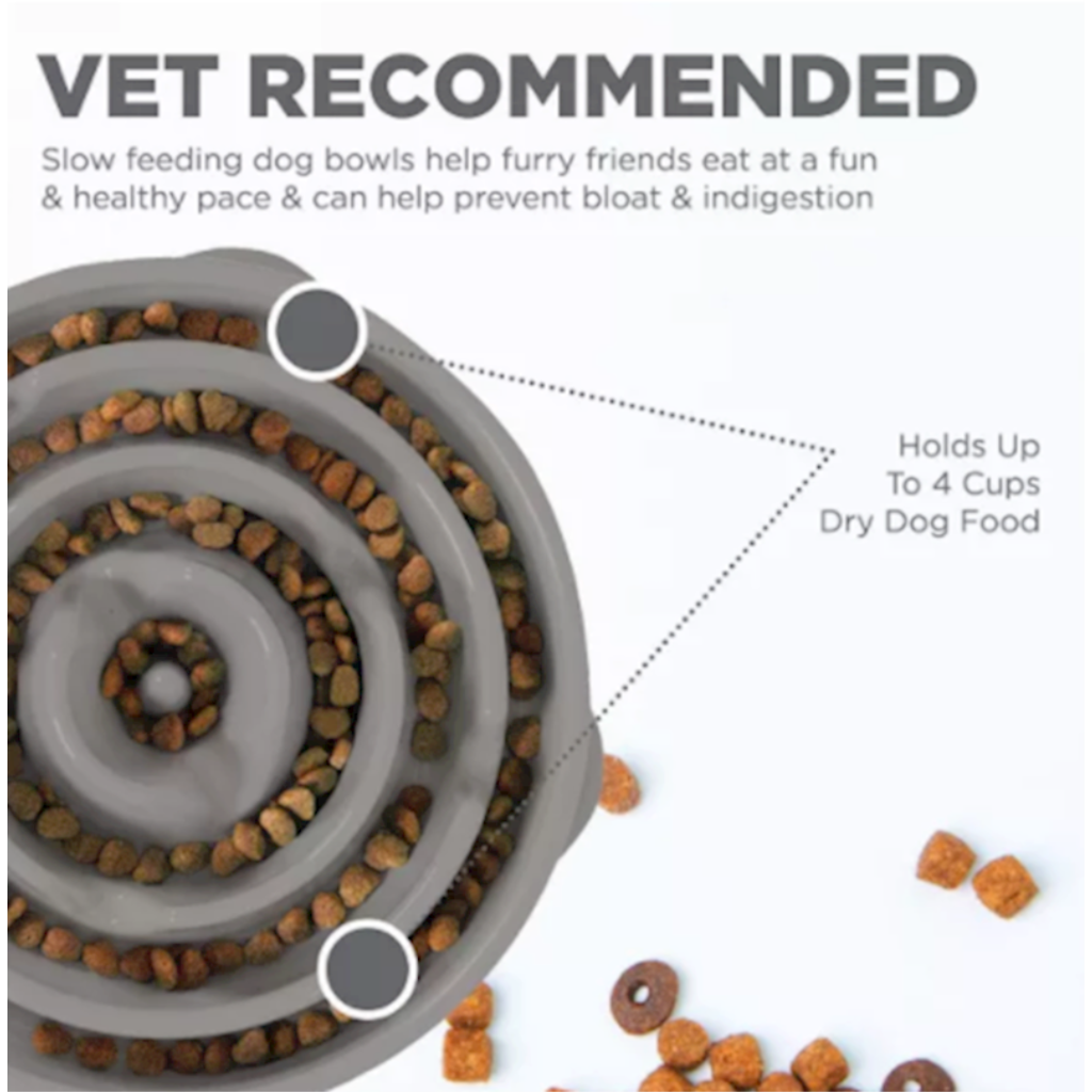 Outward Hound - Dog Fun Feeder Slow Feed Bowl Grey