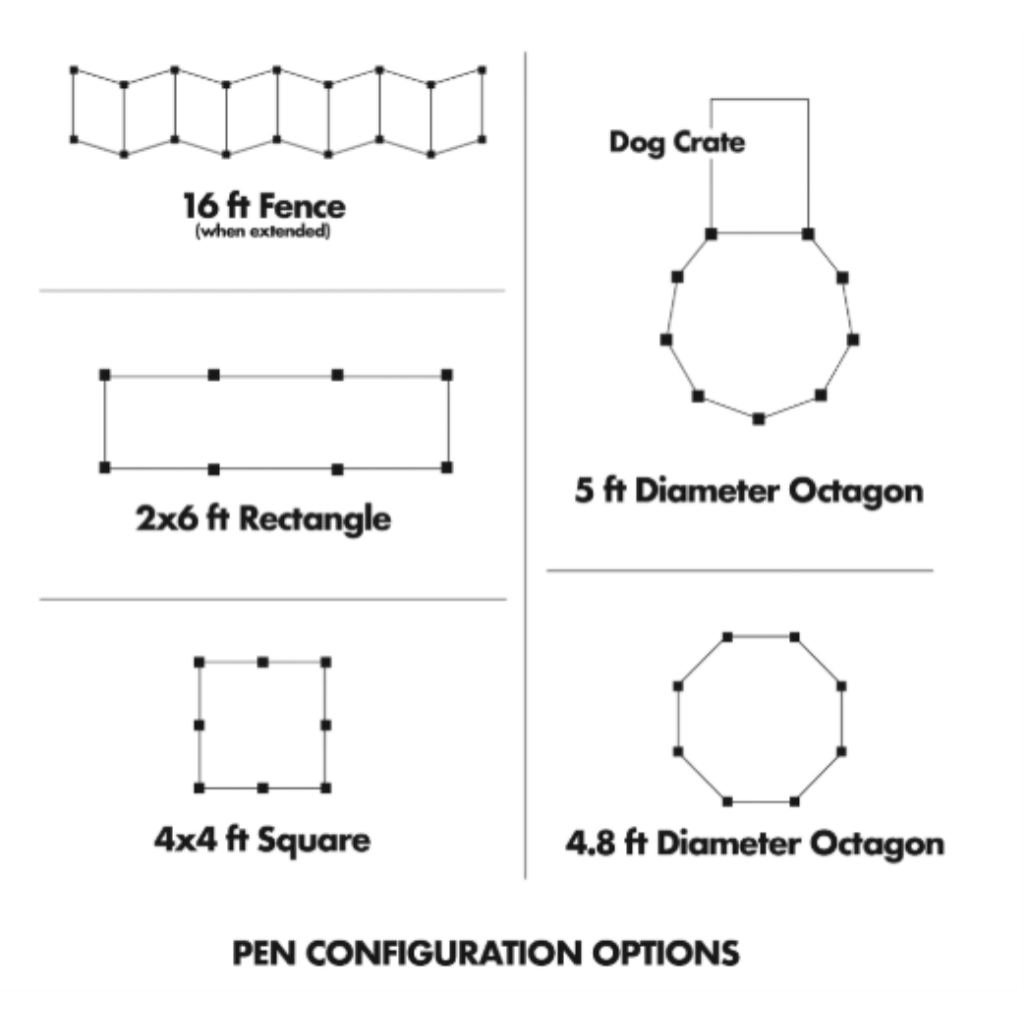 Our Exercise Pens can be configured in a multiple number of ways that best fit you and your pet's needs. Whether you're spending time outside or trying to keep your pet out of an area inside your home, exercise pens can be set up to accommodate all needs. Block off a room by setting up the pen as a fence or give your pet more play space by attaching the exercise pen to your wire crate. Give your pet their own space outside by setting up your exercise pen as a square, rectangle, or octagon.