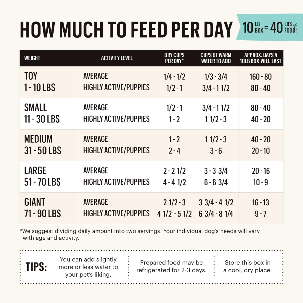 The Honest Kitchen believes human grade, whole foods provide pets the best nutrition possible. This whole grain recipe is made with uncompromising quality control standards using real, whole food ingredients that are gently dehydrated to maintain nutrients & taste. To meet our human grade standard, we use the same whole foods you’d recognize in your own kitchen, and make this recipe in a human food facility. Just add warm water and wait three minutes for a tasty, homemade meal that you and your pets will love!