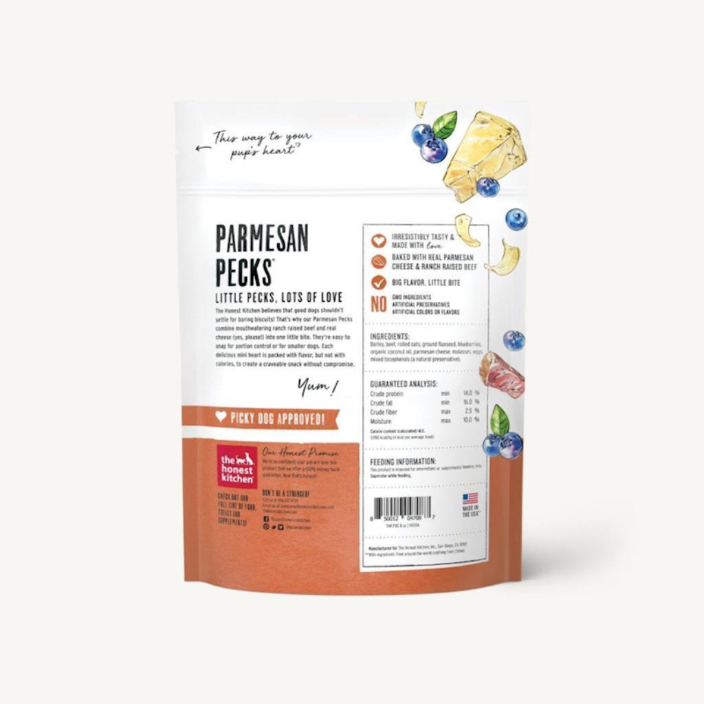 The Honest Kitchen believes that good dogs shouldn't settle for boring biscuits! That’s why our Parmesan Pecks combine mouthwatering ranch raised beef and real cheese (yes, please!) into one little bite. They're easy to snap for portion control or for smaller dogs. Each delicious mini heart is packed with flavor, but not with calories, to create a craveable snack without compromise.