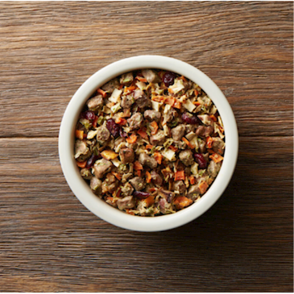 - Complete and balanced blend of raw meat and uncompromised ingredients in every bowl, like sweet potatoes, whole eggs, flaxseeds and more.