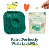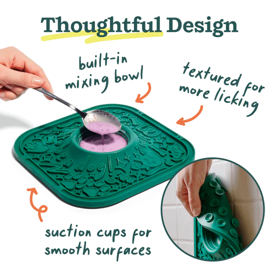 Simply use the desired spread of your choice (we recommend LickMix, which is designed to be made in the pre-portioned mixing bowl), attach to a smooth surface, and let your dog play! When they’re finished, hand wash the LickMat or drop it in the dishwasher. Pair with Bacon & Cheese or Calming LickMix, or use DIY options like peanut butter or yogurt.